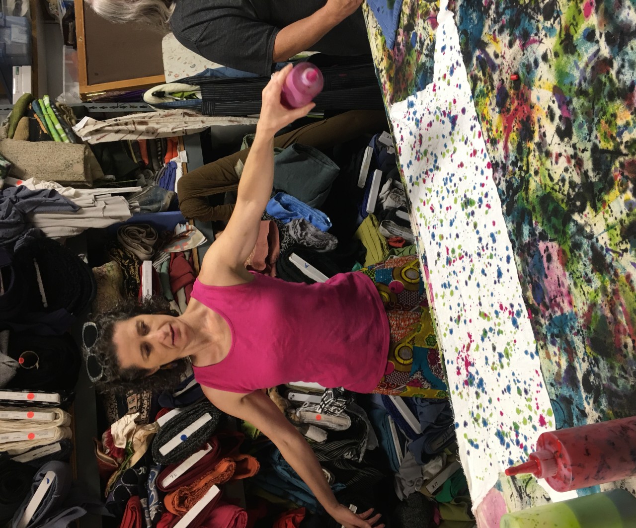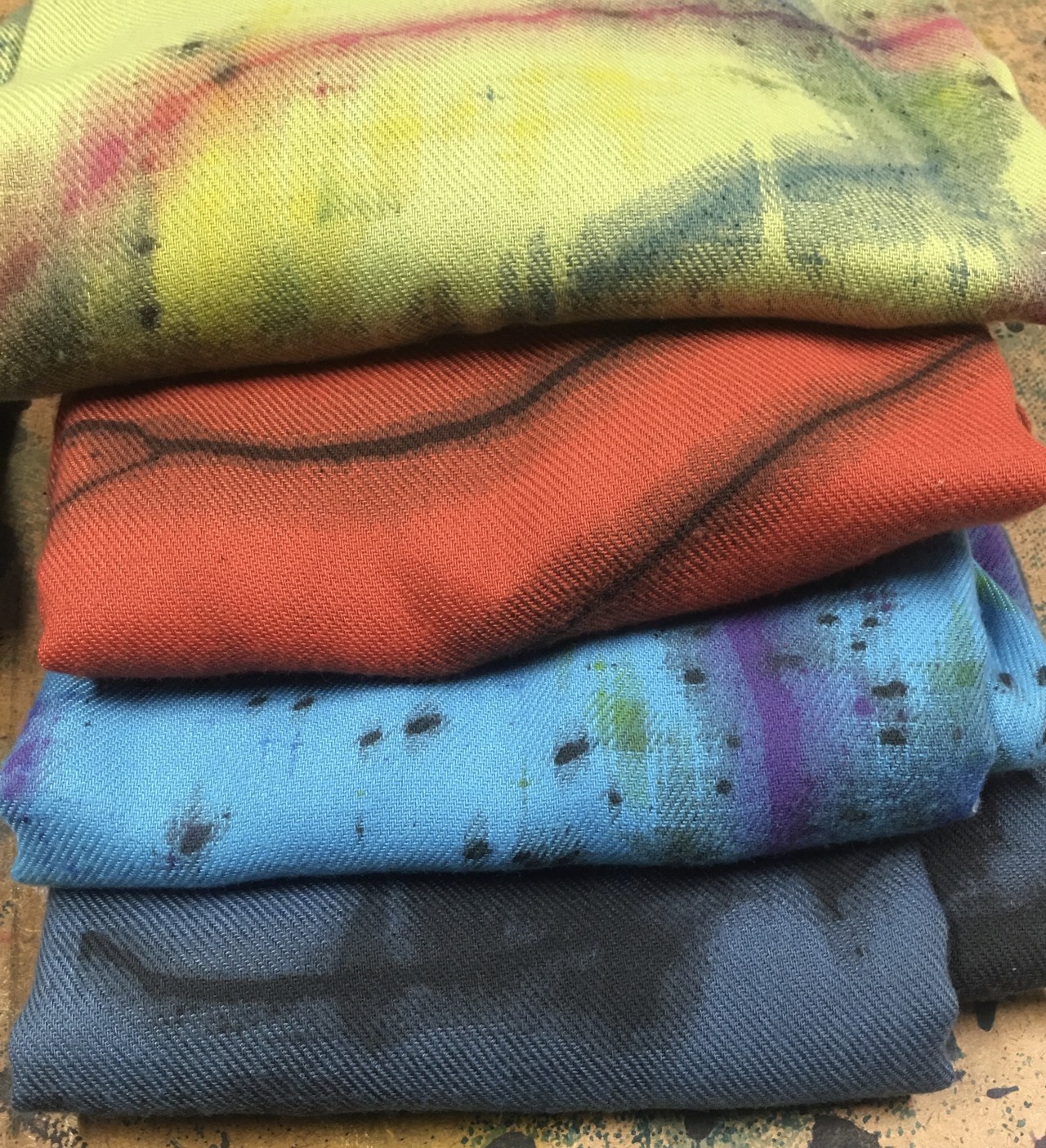 Create 1 beautiful collage with pieces of hand painted fabric and pieces of fabrics with patterns.