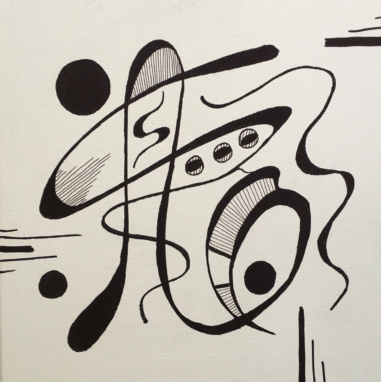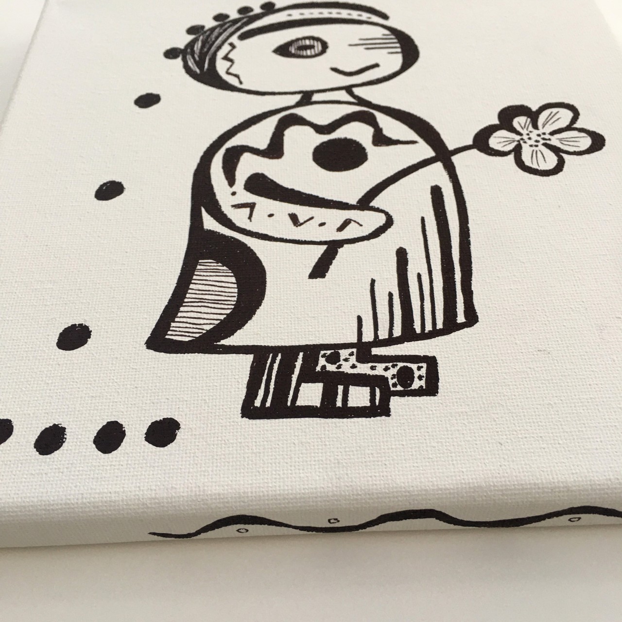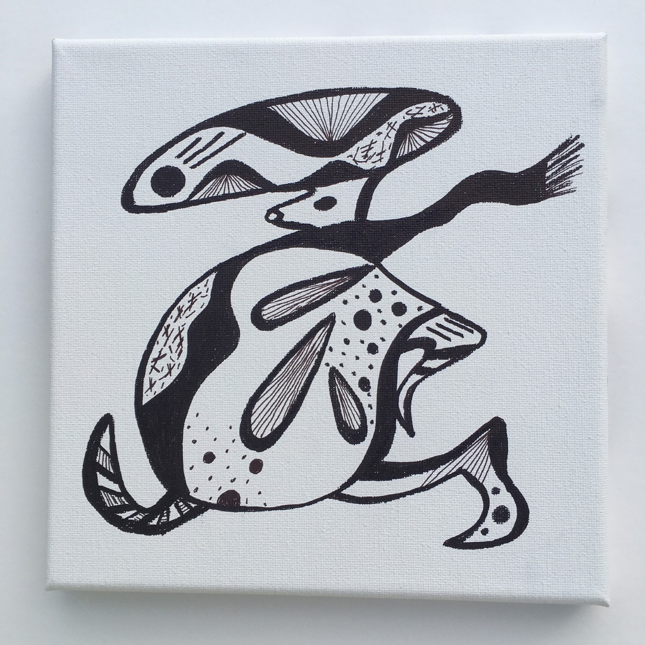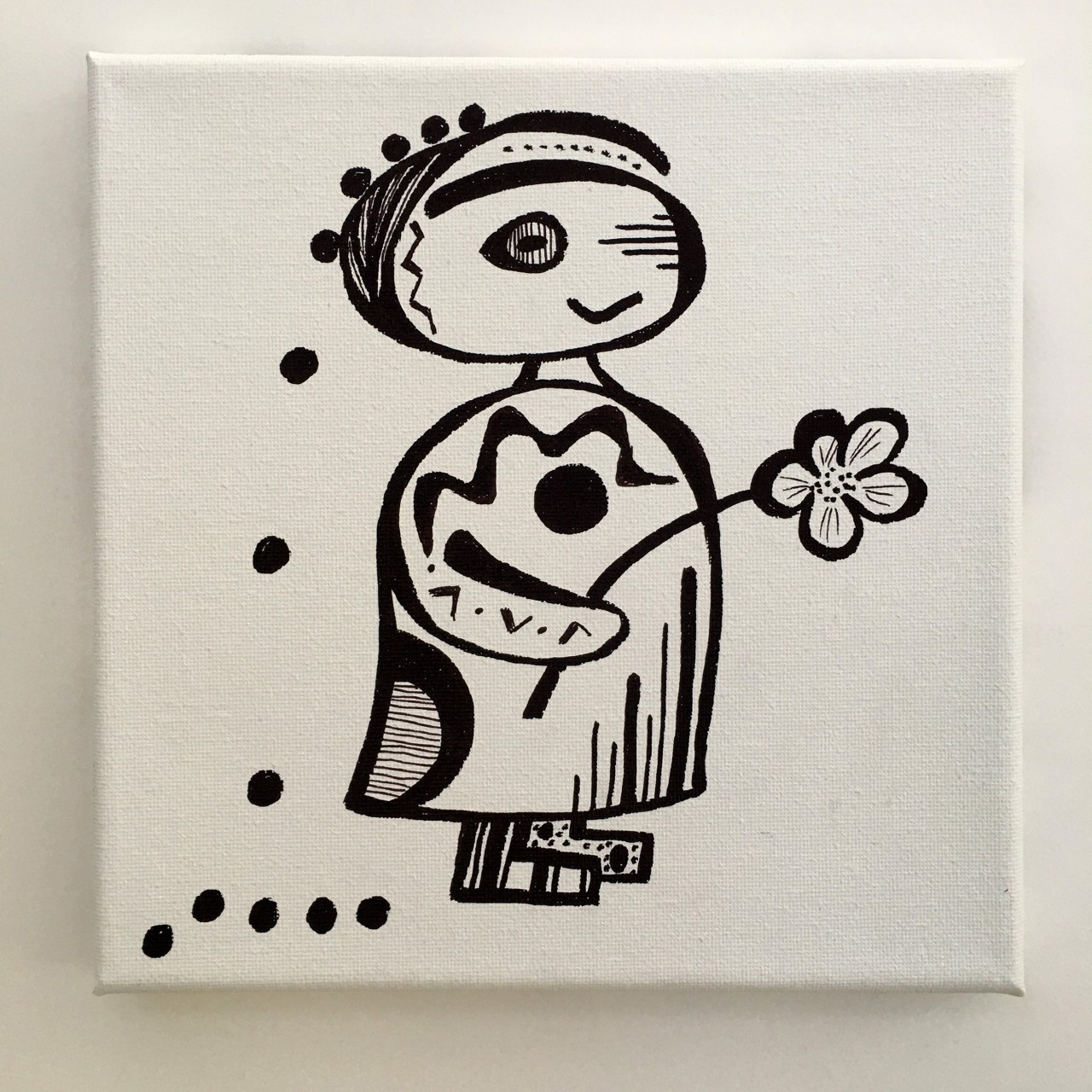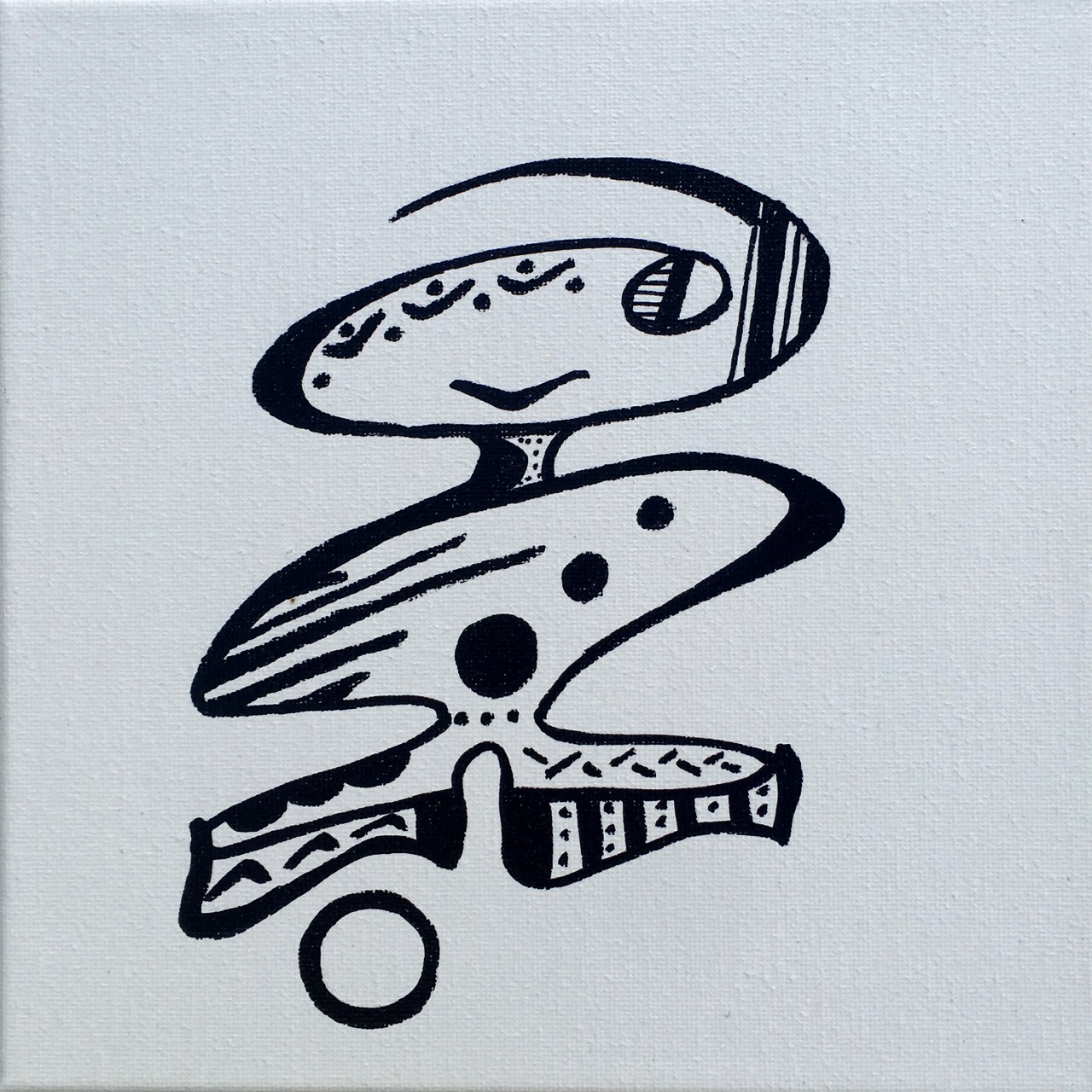 #2 - Wonky Having a Ball - Sharpie on canvas - 8x8x0.5 - 2025 - $125.-